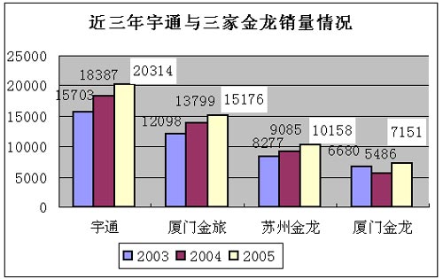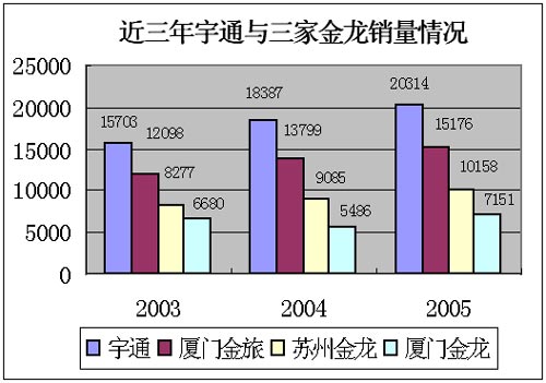 宇通客车不但是一个产品线齐全、销量均衡的企业,而且更是一个市场份额可观且均衡的竞争对手,对于任何一家客车企业来说,无论是以中型客车为主导车型的企业,还是以大型客车为主力车型的企业,都会感到来自宇通客车强有力的竞争挑战和持续不断的压力。