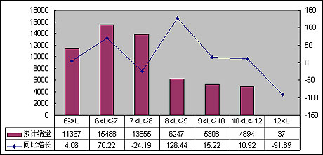 图一 2006年1~7月不同车长非完整车辆累计销售情况