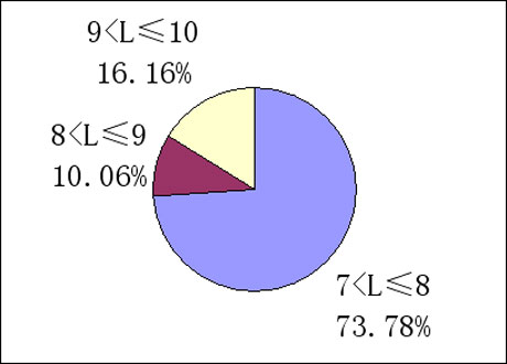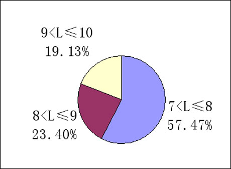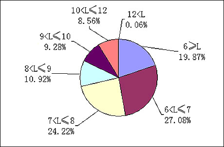 图六 2005年1~7月不同车长中客非完整车辆累计市场份额对比