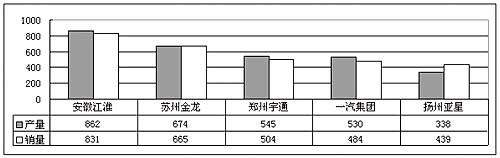 8月份中型客车的销量是4916辆,比7月份增长为13.61%。8月份中型客车生产企业销量排名前五家企业依次是安徽江淮(831辆)、苏州金龙(665辆)、郑州宇通(504辆)、一汽集团(484辆)和扬州亚星(439辆)。