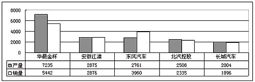 2004年8月份轻型客车前五家产销对比 单位:辆