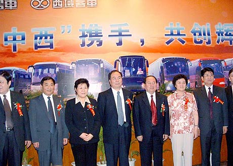 揭牌仪式结束以后,与会代表还参观了摆放在宾馆前广场的中通客车和西域客车10余台展车,参加了新疆中通客车有限公司举办的产品发布会,大家畅所欲言为中通客车全面进入新疆及周边市场出谋划策。