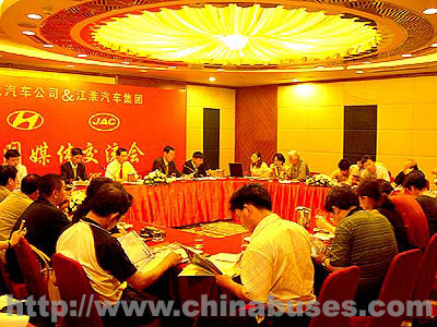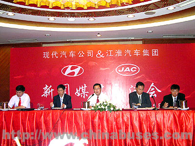 6月15日,安徽江淮汽车公司与韩国现代汽车公司在长城饭店联合举行的新闻发布会。会上,人们再次体验到江淮与现代公司一种鱼水般的合作关系和唇齿相依的发展情结。