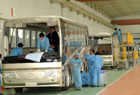 为迎接第六届西湖博览会,杭州公交准备购置五十辆能代表杭州公交新形象的高档公交客车。这些天,东风杭州汽车有限公司正加班加点生产,争取尽快为杭州公交总公司提供二十五辆“风圣”高档公交客车。