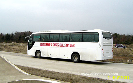 清明时节,沐浴着沁人心脾的油菜花香,我们走访了安徽江淮客车公司。在漂亮的现代化展厅里,三辆展车整齐地列队欢迎我们,其中一辆喷金属漆、全新时尚造型的9米客车,前风档放置着一块获奖的大圆牌子,向我们无声地展示它的特殊身份。接待经理介绍,这就是江淮客车新推出的"省油王子"HK6893K,刚刚从上海捧回了"世界客车联盟2006年度最佳中型客车大奖"。