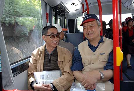 4月20日,首批免费试乘体验快速公交的市民正登上公交车。