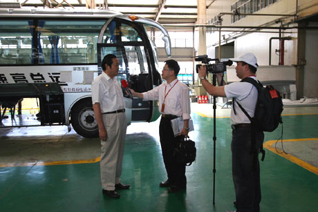 集团党委副书记范群生陪同记者参观了宇通工业园,并接受了记者们的采访。在参观过程中,记者们纷纷拿出摄像机进行现场采访和拍摄,他们对宇通的现场管理、国际化战略给予了高度评价,希望宇通不仅在国内做到最好,在国际市场也能走得更远。中国电视公司采访中心副主任黄乃琦先生接受采访时说:宇通的产品在满足国内市场需求的同时,还能推向国际市场,非常了不起,期待宇通能有更好的发展。日本NHK电视新闻中国总局长加腾青延先生则表示,宇通的生产现场管理给他留下了深刻的印象,宇通不仅能生产现代化的产品,而且管理方法也实现了现代化。