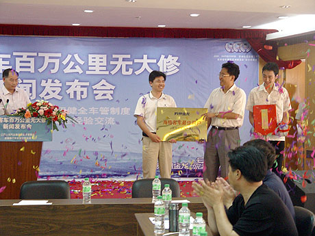 日前,苏州金龙海格客车百万公里无大修新闻发布会暨经验交流会在江西上饶召开。据介绍,江西上饶汽运集团两台KLQ6120Q大巴,从2003年9月开始营运,至今双双行驶突破百万公里而无大修,并且还在不断刷新着纪录。苏州金龙坚持安全为本,提升客车安全性能的做法和上饶汽运集团保障行车安全的的实践,为安全形势日益严峻的中国客运业提供了有益的经验。