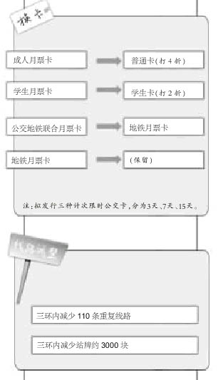 此外,为方便短期来京旅游、出差的人士,还拟发行三种计次限时的公交票卡,分为3天、7天、15天。