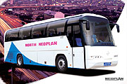 尼奥普兰客车为大曲前围挡风玻璃,线条简洁流畅,是人性和人文气息的最佳整合,车身高大,符合国际潮流,是科技与现代艺术的完美结晶,更有德国MAN底盘,非凡安全性能尽显其中.