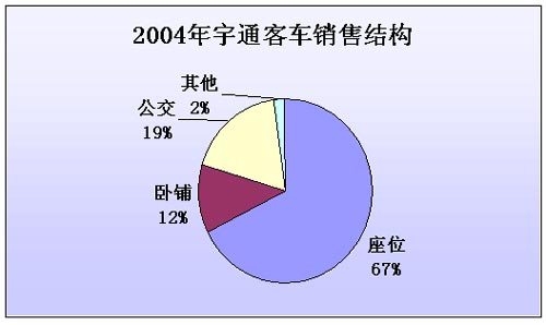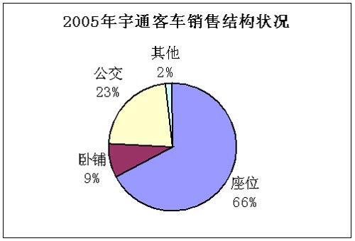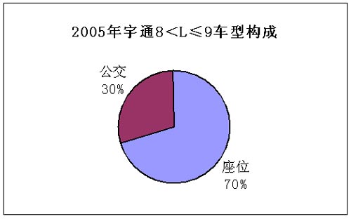 2005年宇通公交客车的销量比重进一步提高,由2004年的19%升至2005年的23%,提高了4个百分点,而卧铺客车的销量比重由12%降至9%,下滑了3个百分点,座位客车的销量比重基本没变,保持在66-67%之间。宇通客车这一产品结构的变化,充分体现出了整个行业的变化特点。