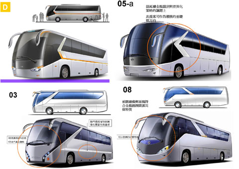 当比例模型经过正式评审,确定了最终方案,整个造型设计告一个段落,是为"设计方向冻结"。接下来的工作是通过电脑软硬件对设计方案进行数字化处理。在这个阶段,大金龙研发部门也展开同步数据去检讨车架的结构,以确保设计提案与车架底盘之间的可行性。
