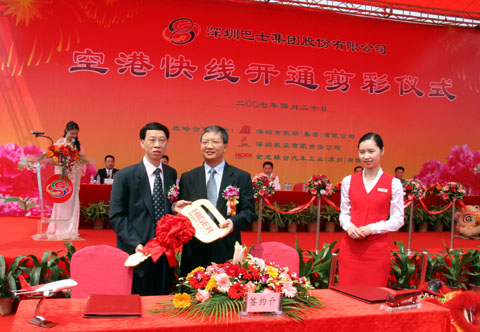 4月20日,在深圳宝安国际机场举行的空港快线开通仪式上,164辆海格客车正式投入连接深圳机场与深圳各区的6条新线路运营。空港快线大部分行驶高速公路,机场乘客通过乘坐空港快线直达机场候机楼,免去频繁转车、搬运行李等种种不便,并以"准航空式"服务,将空中服务延伸至地面交通,真正全方位实现"空中地面的无缝对接"。今后,无人陪伴儿童或老人的特殊旅客服务将延伸到巴士乘车处。不久,还将开展远程值机服务,深圳航空公司将把值机手续前移到空港巴士上,让旅客在前往机场的路上就能换取登机牌,免去在机场排队等候之苦。