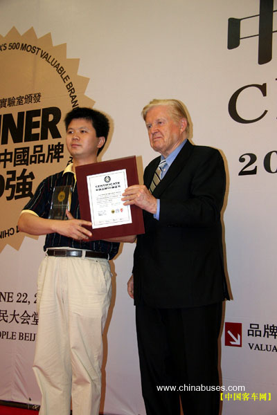 Brand Lab)独家编制的2007年《中国500最具价值品牌》排行榜.厦门金旅第一次上榜便以60.13亿元品牌价值,入选2007中国品牌500强第102名,表现不俗。