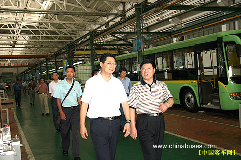 安徽江淮客车有限公司董事长王江安陪同客户参观江淮客车生产车间