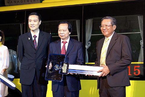 上海申龙客车公司总经理樊万顺介绍说,曼谷市公交车辆比较陈旧,无法满足泰国政府对环保节能的高要求,更新换代成为必然。一年多前,上海申龙看准这一机遇,进入泰国开拓市场。目前已有480辆天然气客车投入泰国各地客运市场,其中包括新机场15辆大型摆渡车。中国客车选用优质发动机,专门针对泰国天气炎热的情况加强了空调装置,加上价格合理,大受欢乐。这一次,曼谷市又成批采购500辆,投入公交运营。能对曼谷市的节能环保以及公交车升级换代发挥作用,他们作为中国企业感到非常自豪。