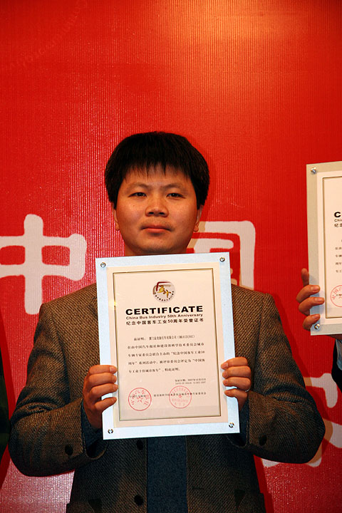 2007年12月12日上午,由中国汽车报社和建设部科学技术委员会城市车辆专家委员会共同主办的"纪念中国客车工业50周年颁奖典礼暨中国客车工业50周年纪念大会"在北京世纪金源大饭店隆重举行。大会对中国客车工业发展做出重大贡献的企业和个人颁奖,同时,来自全国各地的优秀客车企业及相关行业的代表、政府官员、专家学者、主流媒体代表汇聚一堂,共同商讨中国客车产业的可持续发展以及中国客车如何走好国际化道路等议题。