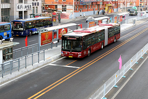 大连市的快速公交系统,即是大连的首条BRT线路,也是东北地区的首条BRT线路,工程总投资为3.4亿元,全部采用黄海牌BRT客车。首批投入运营的64辆黄海BRT,分为18米和12米各32辆,全部为引进德国MAN公司技术和生产线的精品之作,具有大容量、大开门、低地板、运行速度快、安全环保等特点,是目前世界上最为先进的快速公交客车。黄海BRT客车驶进大连,不但成为大连市一道靓丽的城市风景线,还将为整个东北地区的城市BRT系统起到引导和示范的作用。相信在不久的将来,黄海BRT客车将更多地出现在各大城市,承载市民出行,提升城市档次。 |