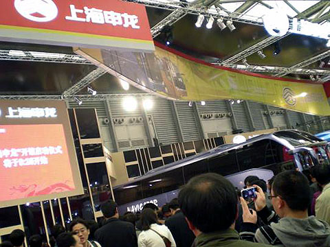 尤其是美国客户现场签约SLK6106 型客车80辆订单后,众多参观者争相到展台目睹“尊容”,本次申龙展台汇聚了海内外的超强人气,不愧为BAAV2008的"人气王"。上海申龙从公司高层到销售员和现场接待人员无不应接不暇,洽谈业务、接受采访、分发资料、引导参观、车型讲解……这其中,申龙SLK6123客车的“无污染、零排放”也成功吸引了不少人前来观看;据随机访问得知,前来参观者中不少人就是慕“最佳客车造型奖”的名而来,他们纷纷在申龙展台前与众明星车合影留念,留下值得纪念的镜头。