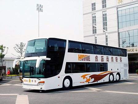 安凯13.7米双层豪华商务客车,是安凯公司07年推出的新产品。该车采用全承载车身设计,装配德国奔驰310KW大功率发动机,整车重心低,一级踏步入口,具有动力强劲、安全、豪华、舒适、行李仓大等诸多优点。第一台样车刚问世,就被辽宁虎跃公司抢购。经过一年时间的实际运营,该公司负责人表示该车在客运细分市场具有很强的竞争力,经营效益更好,尤其是在近年来燃油价格不断上涨,乘客对车辆的安全性、舒适性的要求愈来愈高,客运企业间的竞争更加激烈的情况下,安凯13.7米双层豪华商务客车能够很好地满足乘客和用户的要求,为客运企业创造更多的价值。