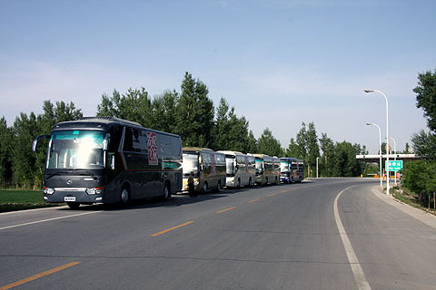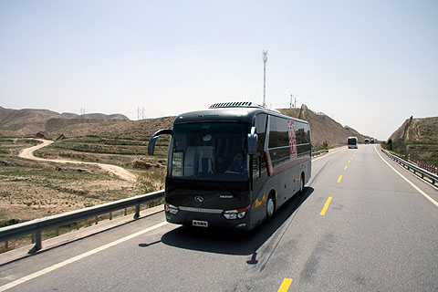 5月10日,我顺利在兰州与大金龙2008发现之旅车队会合,向新疆迈进,自从4月下旬在太原与车队短暂告别之后,在兰州又回到5辆车(1号车:大金龙龙威XMQ6129Y;2号车:XMQ6900Y;3号车:XMQ6117Y;4号车:XMQ6126Y;5号车:XMQ6140Y)的身旁,很是亲切。