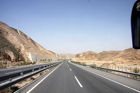 在午时短暂休息后,车队一鼓作气,持续保持上坡80公里/时,平路和下坡130公里/时的速度,继续翻越了永昌县附近的高原道路,于下午5点钟准时到达了预期地点:张掖市的高速路出口,顺利地完成了今天的行程。