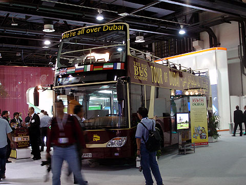 TRAVEL MARKET)。THE BIG BUS COMPANY将去年底从安凯公司购置的HFF6110GS—1城市旅游观光车打扮一新,参加了展会,吸引了来自全世界各个国家和地区的旅游投资商和游客的目光,成为本次展会的一大亮点。