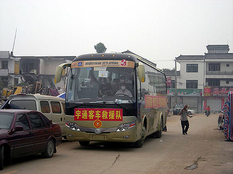 红红宇通车 浓浓赈灾情