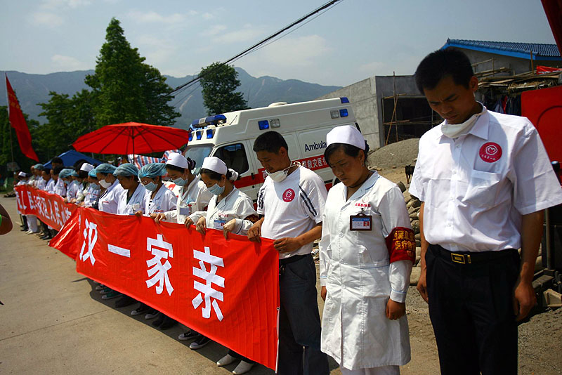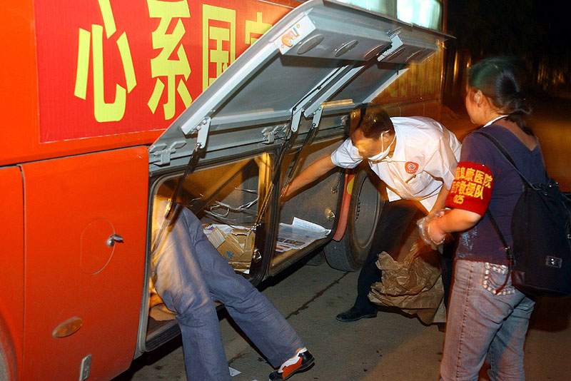 救援队领队:我们接受共青团成都市委委派的任务,往灾区输送大学生或者退伍军人等志愿者以及物资,最近两天,我们的车把医务工作者送往北川、彭州和汉旺镇等重灾区,我们车辆一共出动了15次,运送了600多人。