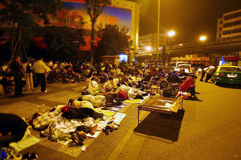救援队领队:我们分公司在成都和重庆,地震时,办公桌、电脑和文件柜倒在地上,不过没有人员伤亡。