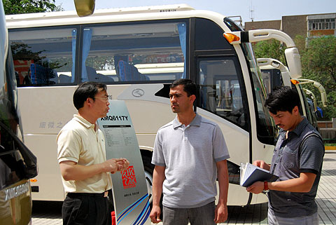 中亚客商还对巡展样车的技术性能进行了详细的了解,大金龙技术工程师现场对外商提出的技术问题进行了解答,并就相关设计参数与外商进行了认真探讨,为日后进行实质性合作奠定了基础。大金龙产品的专业技术性能受到中亚客商的认可,“中国客车专家”的品牌主张也得到了中亚客商的高度肯定。