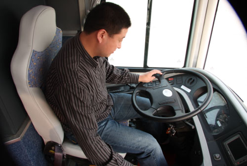 比赛终于结束了,周景华师傅不负众望地以决赛百公里19.7升/百公里,总成绩19.91升/百公里的成绩勇夺"节油精英赛"冠军!周师傅对ZK6127H"神行剑"能跑出百公里20升以下的成绩非常欣喜,同时也有一些遗憾。周师傅表示,今天他一直在严格按照昨天徐工程师讲解的方法驾驶,可惜有一个下坡时判断错误,多踩了一脚油门,要不成绩肯定还能更低。当问到他对比赛用车神行剑的感受时,周师傅掩饰不住自己的喜爱一直夸奖:外观豪华大气,动力很强,操纵起来很舒适,最关键的是非常节油,如果不开空调的话,肯定百公里还能再省上一升油。当周师傅举起冠军奖杯时,自豪之情溢于言表!