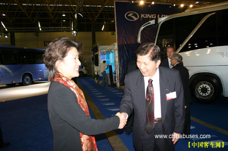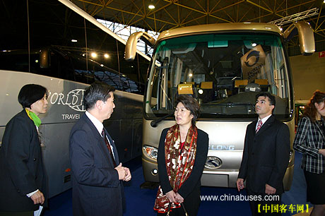 章启月女士在参观大金龙展台时,对大金龙展车给予了高度评价,称赞大金龙此次参展,不仅向欧洲展示了东方胜地的优秀客车产品,而且在较大程度上让世界,尤其是欧洲更加了解中国,了解中国客车的发展情况。
