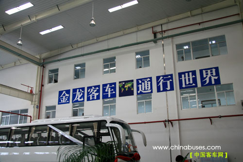 从生产车间的墙上一句"金龙客车,通行世界!"的广告语,已让我们看见了中国客车国际竞争力的希望以及大金龙走向世界的决心