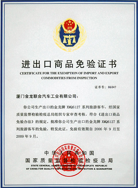 2006年8月,包括大金龙在内的三家汽车企业首批获得了产品出口"免验"资格,标志着中国汽车行业已经成功开启了"出口免验"的大门。