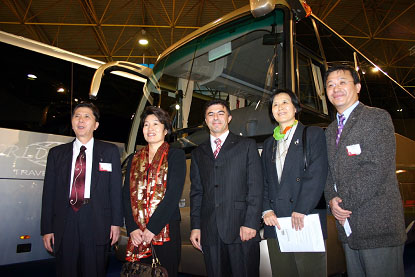 中国驻比利时大使章启月女士亲临大金龙展台祝贺,与大金龙总经理江世煌先生、欧洲代理商等人合影留念 大金龙首度出现在欧洲展览会吸引了世界各地用户和媒体的关注,其产品外型、产品工艺和高性能价格比获得了媒体的好评。另一方面,面对大金龙客"杀"入本土,引起了诸多欧洲本土制造商的不安,大大刺激了他们的紧张神经--一个新的竞争对手已经来临!