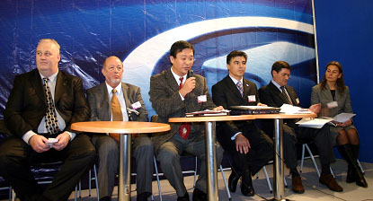 大金龙总经理助理张万益先生在出席现场新闻发布会,表明大金龙客车志在世界 "世界客车在中国,中国客车看金龙"是大金龙的梦想,这个梦想固然不能通过参加一两次世界客车博览欧洲展览会就能实现。但是,大金龙已经走出了很重要的一步,也传达给世界一个信息,大金龙志在世界。