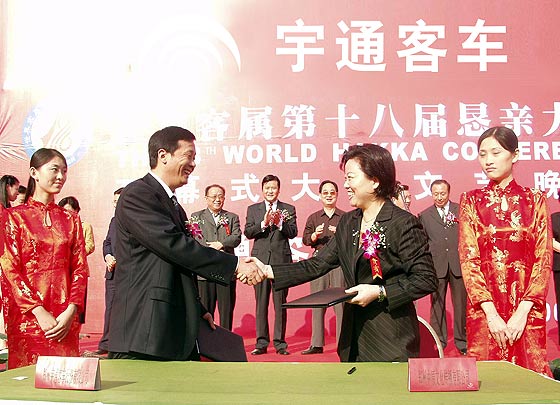 得知宇通公司再次赞助盛会之后,世界客属第十八届恳亲大会执行主席、河南省客家联谊会会长林雪梅同志表示十分高兴。她说:"这是到目前为止我们收到的最大一笔赞助费,对我们组委会的全体人员都是很大的鼓舞,对关注本次大会的广大客属同胞也是很大的鼓舞。这也更加坚定了我们办好这次恳亲大会的信心!