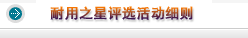 获得以上荣誉者,除赢得宇通特制精美"耐用之星"车标及"耐用之星"荣誉证书外,更可获得丰厚赠品,宇通专业技术人员还将提供"让耐用更耐用"的售后服务以回赠客户。 网上提交