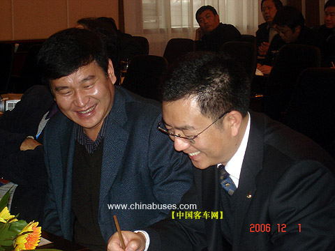 保运集团张书记和宇通公司王总为多年的合作成功而由衷高兴:"还要再合作一把!"