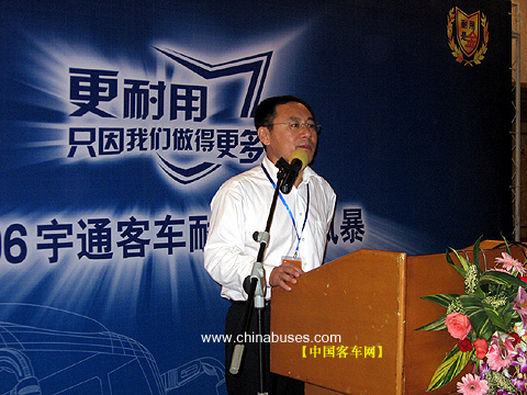 接着兰院长就耐用进行了更深入的讲解。"客车作为商用车,以赢利为直接目的,如何在尽短的时间内把成本收回来,如何在同等时间内取得最大的经济效益,是购买者最为关注的。而要实现这两点,就必须保证车的耐用性,即作为前提的可靠性。耐用就意味着故障率低,降低了维修费用的同时也延长了运营时间,利润相应当然增大。耐用的另外一个指标就是安全性,"生命诚可贵",在日本、美国等很多国家都曾发生过重大的客车事故,剥夺了很多人的生命。所以保证客车的耐用性,是企业自身发展的必要条件,更是必须担负的一种行业责任。耐用还有一个重要指标就是舒适性。随着社会的进步,人们越来越重视生活的品质。客车与衣食住行这生活四大要素中的"行"密切相关,所以满足乘客对舒适度的要求,对于客车企业的发展至关重要。宇通公司作为客车行业的领头羊,在客车的耐用性方面做了很好的研究与实践表率。"