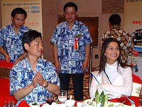 两位小姐也被热情的三亚所感染,在会场里不知疲倦的应酬。在仪式上两位小姐欣然接受了大赛指定用车制造商――中通客车公司赠送的漂亮车模,这是她们在中国的第一份礼物,所以显得格外高兴,并且在