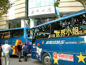 | 世界小姐乘中通博发车队,前往上海集邮大厦参加慈善活动 |