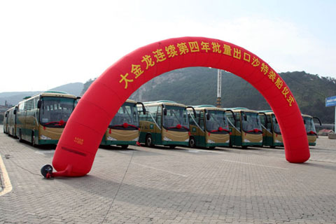 沙特人从2004年开始试探订购大金龙,随后不断加大订量,用他们的评价:大金龙的产品很适合他们的需求。得到这样的评价,对大金龙来说是付出了许多努力的,沙特的广大地区属亚热带沙漠气侯,炎热干燥,沙漠约占全国面积的一半。为了使产品适合当地路况并克服炎热气侯引起的使用故障,大金龙技术人员专程前往沙特进行技术更改论证,并多方了解当地的驾驶习惯,为其设计了实用型产品。初次订购的使用情况使沙特用户感到满意,随后数次的订单中,每当用户提出特殊要求,大金龙都积极响应,不仅从技术上给予论证和支持,同时还能为用户提出很多参考意见,比如客车的经济适用性、舒适性的提升、安全性和环保的考虑等,用户感到金龙是真正为使用者造车,而不仅是单纯售车。随着时间的推移,大金龙产品的性能优势被证明,其及时优质的售后服务也最终这坚定了沙特用户的购买信心。