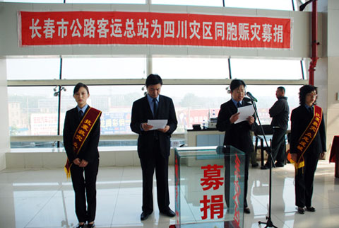 5月16日,长春市公路客运总站在长春市凯旋公路客运站举行为四川灾区同胞赈灾募捐活动。