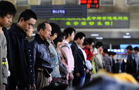 旅客、客运职工向汶川大地震遇难者默哀