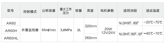 AR60系列集中润滑系统为单线并联式集中润滑系统,由齿轮泵、单列式单线分配器和监控单元组成,该系统不仅提高润滑泵站的吸脂性能及分油器的注脂性能,同时还解决了长期困扰业界的油箱底部油脂堆积变质难题。