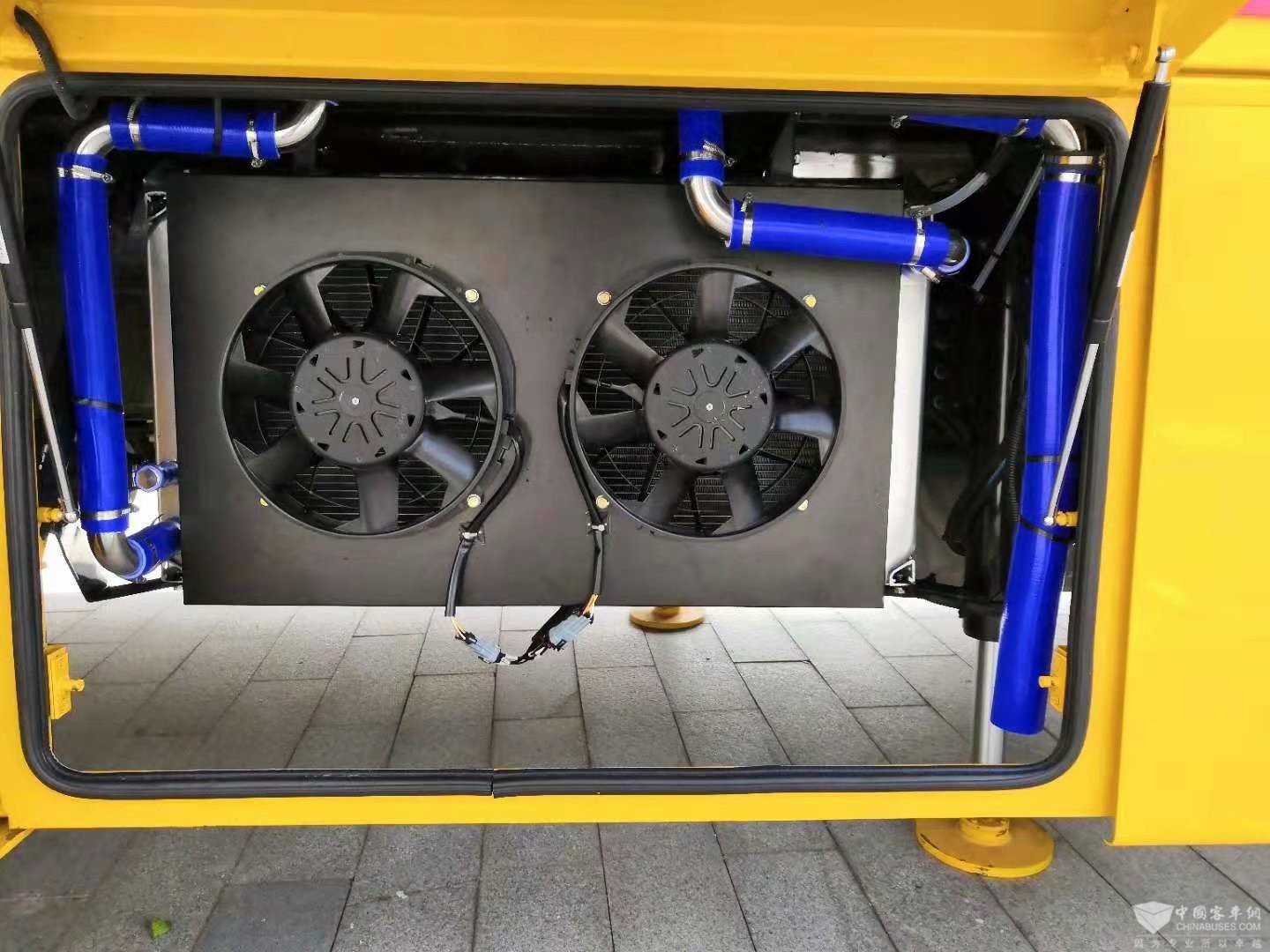 我国现有大中型客车,尤其是后置发动机车型,其发动机冷却系统通常采用皮带驱动传统风扇, 传统风扇散热功耗大,消耗功率为发动机总功率的 10% 以上,风扇噪声大、且受安装空间的限制, 加上散热器和中冷器对最佳工作温度的要求不同,使得发动机的热效率低、水温偏差大、有效功率减 小这样就造成了传统的发动机冷却系统很难满足现代客车对其提出的节油及低噪要求。ATS 系统,应 用电驱风扇取代皮带传动风扇,并通过智能电子控制和独立布置方式,在简化发动机冷却系统安装的 同时,还全面改善了系统的燃油经济性、排放及静音性能。