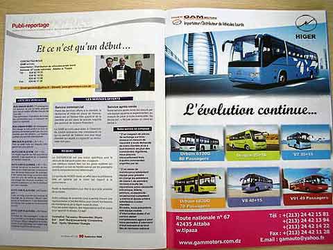 日前,第二届阿尔及尔国际商用车展在阿尔及尔国家展览馆SAFEX举行,此次展览是独立于阿尔及利亚轿车展而专为商用车举办的,共有34个汽车经销商参加。海格客车以布展面积最大、展出的客车展品最多成为本届展会组团规模最大的巴士展商。据了解,海格展台超过800㎡,展出KLQ6758、KLQ6796/Q、KLQ6896Q,KLQ6119Q、KLQ6129Q、KLQ6820G、KLQ6100G共8大系列车型。本届展会吸引了众多欧洲和日韩品牌奔驰、雷诺、现代、起亚、丰田、尼桑等汽车巨头参加,中国也亮出了东风、解放、福田、江淮、海格、金龙、宇通等为主导的民族自主品牌,与世界知名品牌同场竞技。