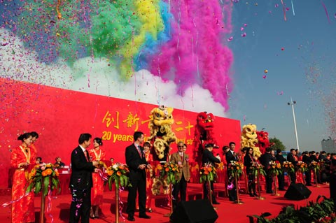 12月18日上午9时10分,在欢快祥和的音乐声中大金龙20周年庆典拉开帷幕,大金龙董事长孙建华首先致欢迎词,他回顾了大金龙20年艰辛的创业历史,并代表全体大金龙人向20年来关怀和支持大金龙事业,与大金龙共同前进的朋友们表示感谢。